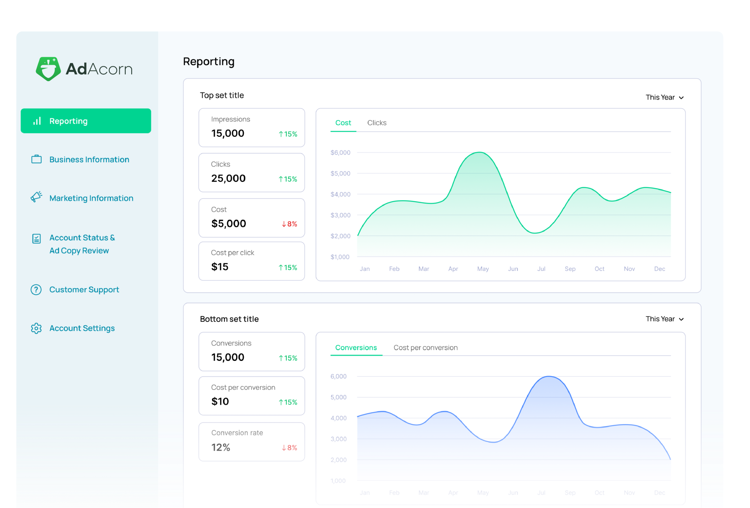AdAcorn handles bidding, structure, and optimization automatically based on your goals.